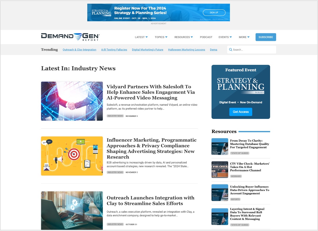 Sponsored articles position your brand alongside Demand Gen Report’s industry news and research, earning you increased visibility and credibility among your target audience. Your sponsored articles will be showcased on Demand Gen Report’s website and distributed via our weekly newsletter and online network. Choose our Standard option to supply your own copy, Expert Insights to have our editors and creative team produce it for you, and/or Interactive Advertorials to bring your brand and message to life.